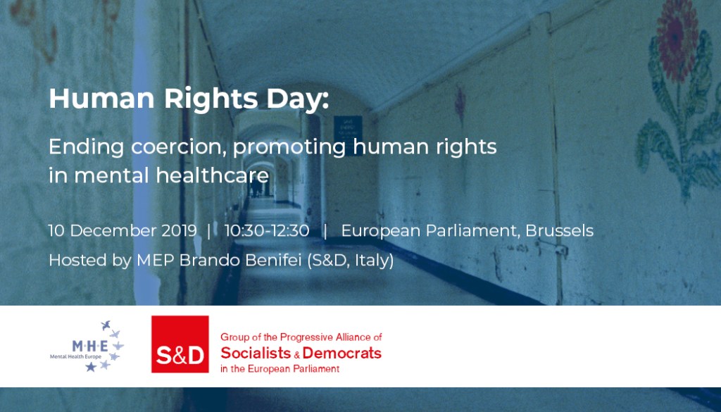 On 10 December 2019, to mark Human Rights Day, member of Coalition for Mental Health and Wellbeing Brando Benifei MEP (S&D, Italy) hosted an event ‘Ending coercion, promoting human rights in mental healthcare’.