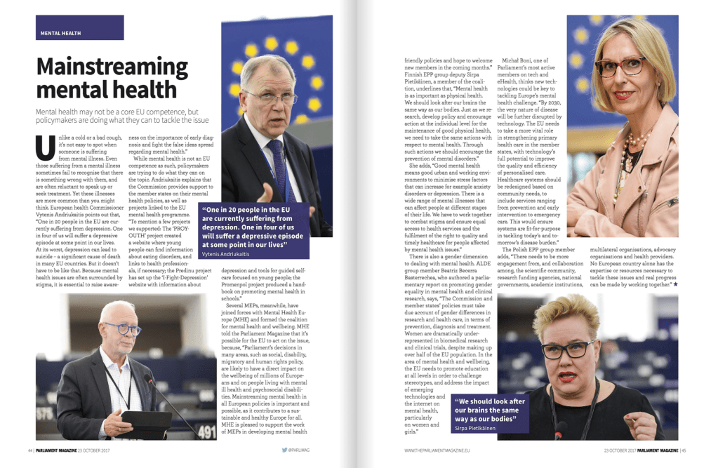 Mental health may not be a core EU competence, but policymakers are doing what they can to tackle the issue. Mainstreaming mental health in all European policies is important and possible, as it contributes to a sustainable and healthy Europe for all.